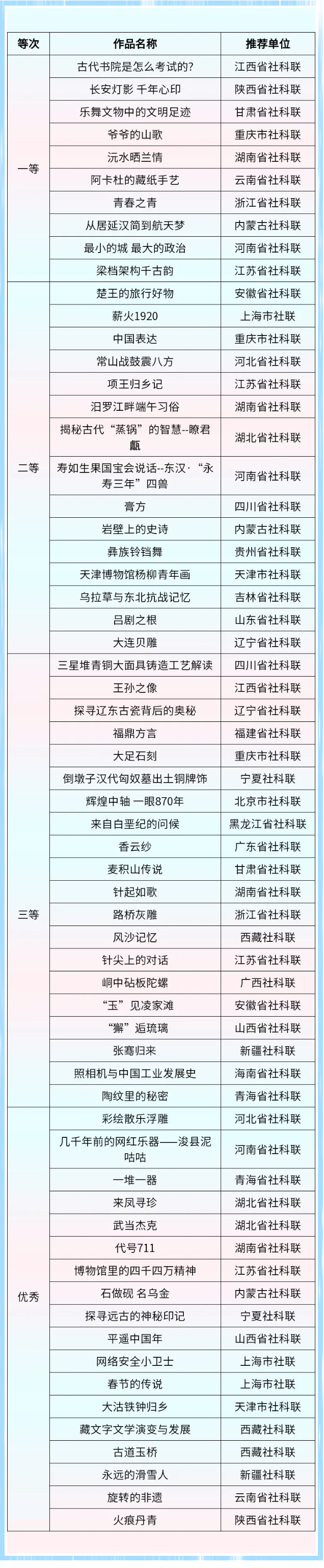 第三届“人文社科之光”社科普及短视频评选结果出炉 拟获奖作品公示